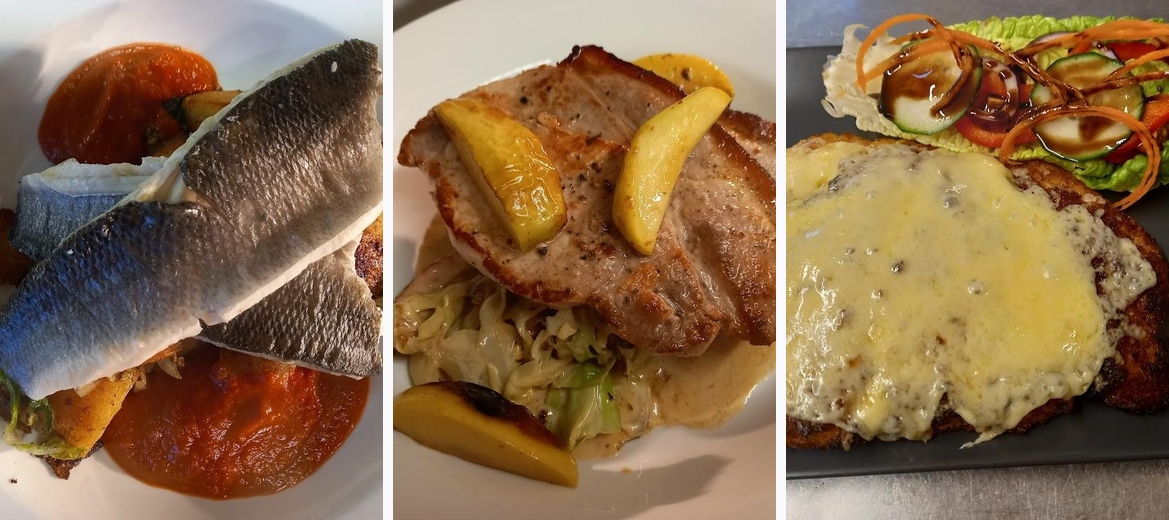 The Old Royal George Inn specializes in fresh home-cooked food, featuring a variety of dishes that cater to different tastes, including options like Cashew Crusted Chicken Breast and Lemon Butter Salmon.